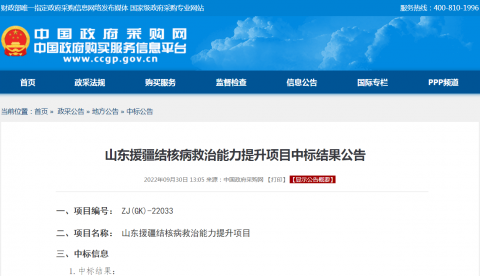 泰維中標(biāo)山東援疆結(jié)核病救治能力提升項(xiàng)目查看更多 -