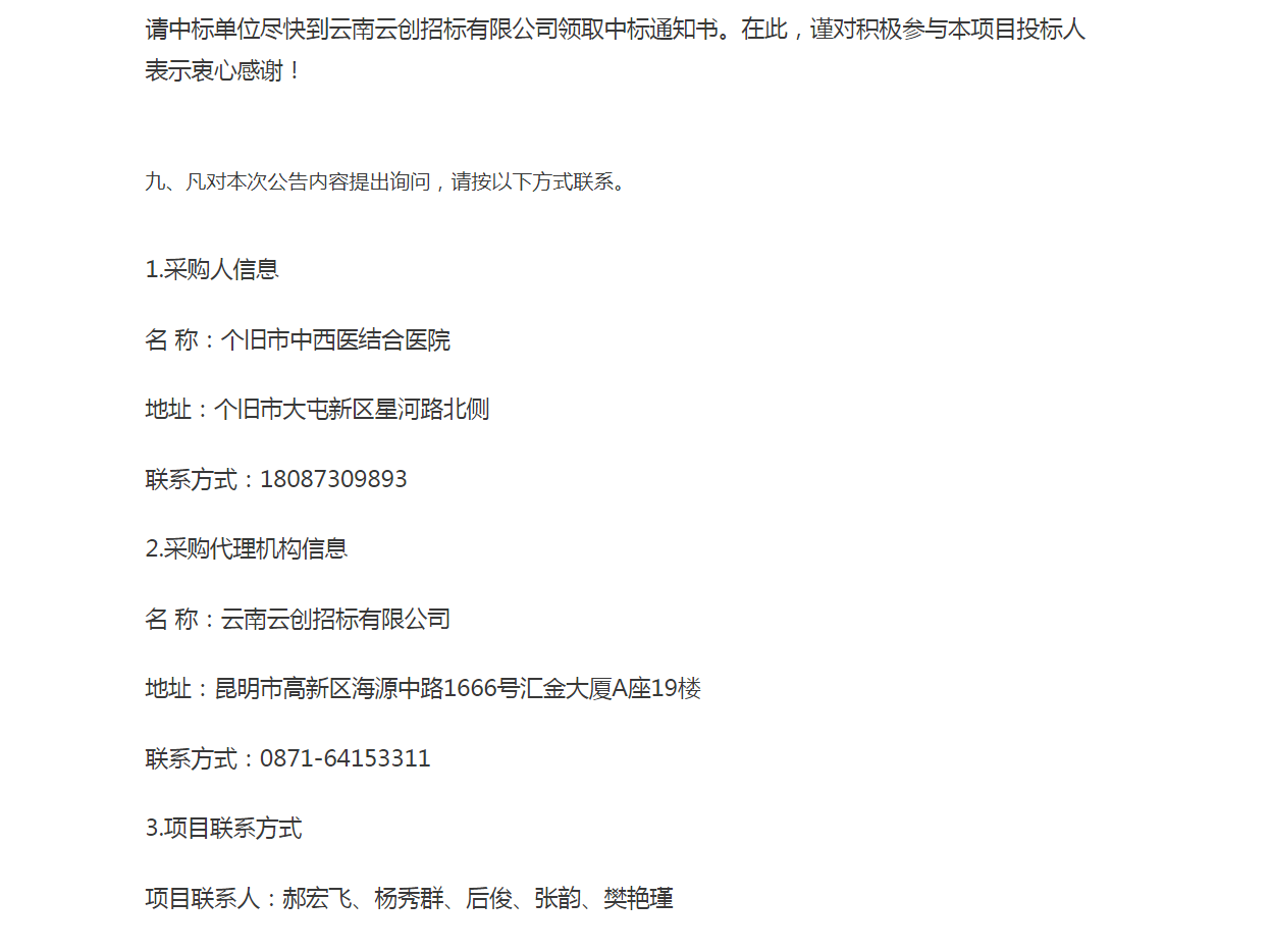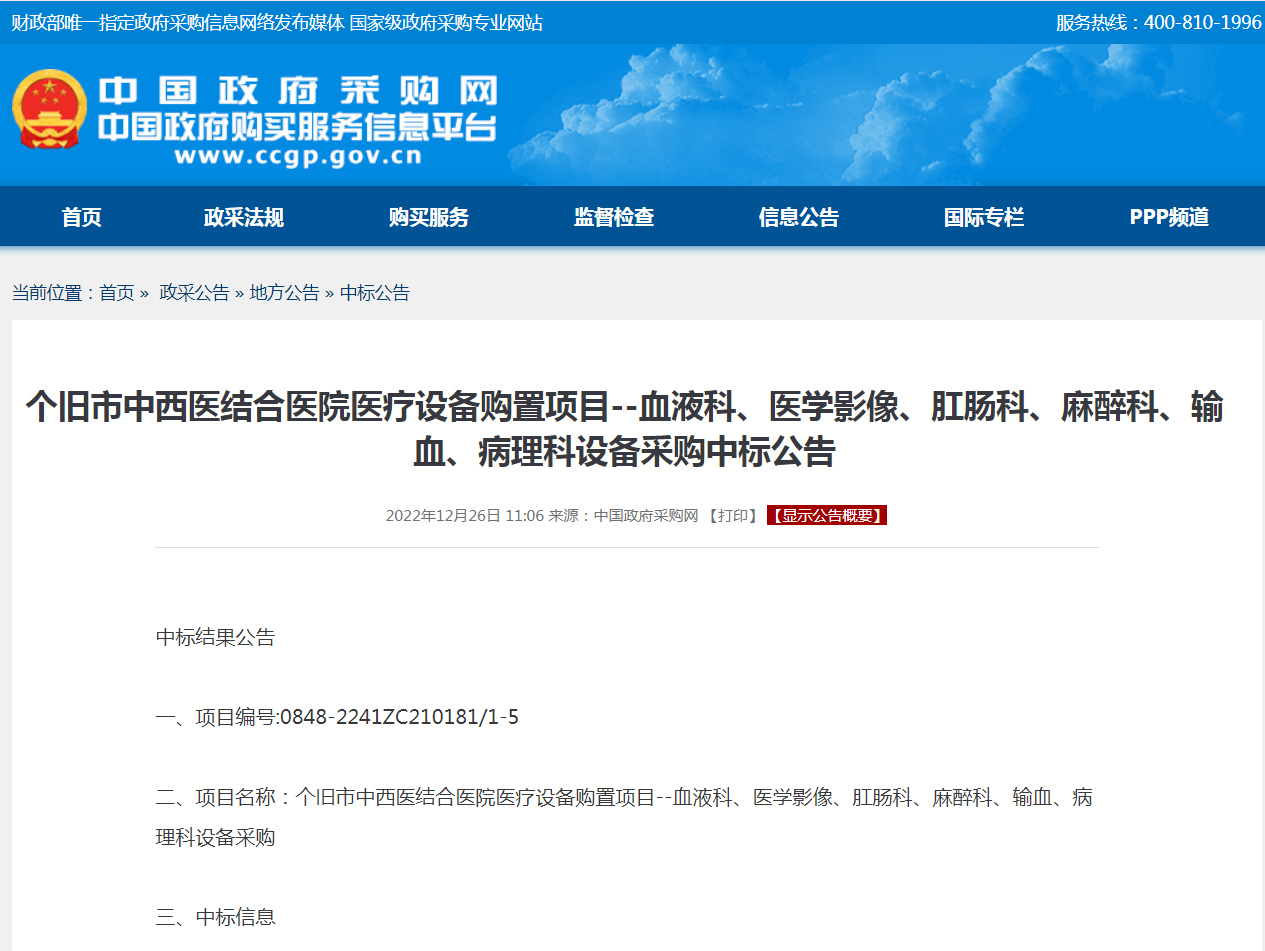 泰維中標(biāo)個(gè)舊市中西醫(yī)結(jié)合醫(yī)院醫(yī)療設(shè)備購置項(xiàng)目